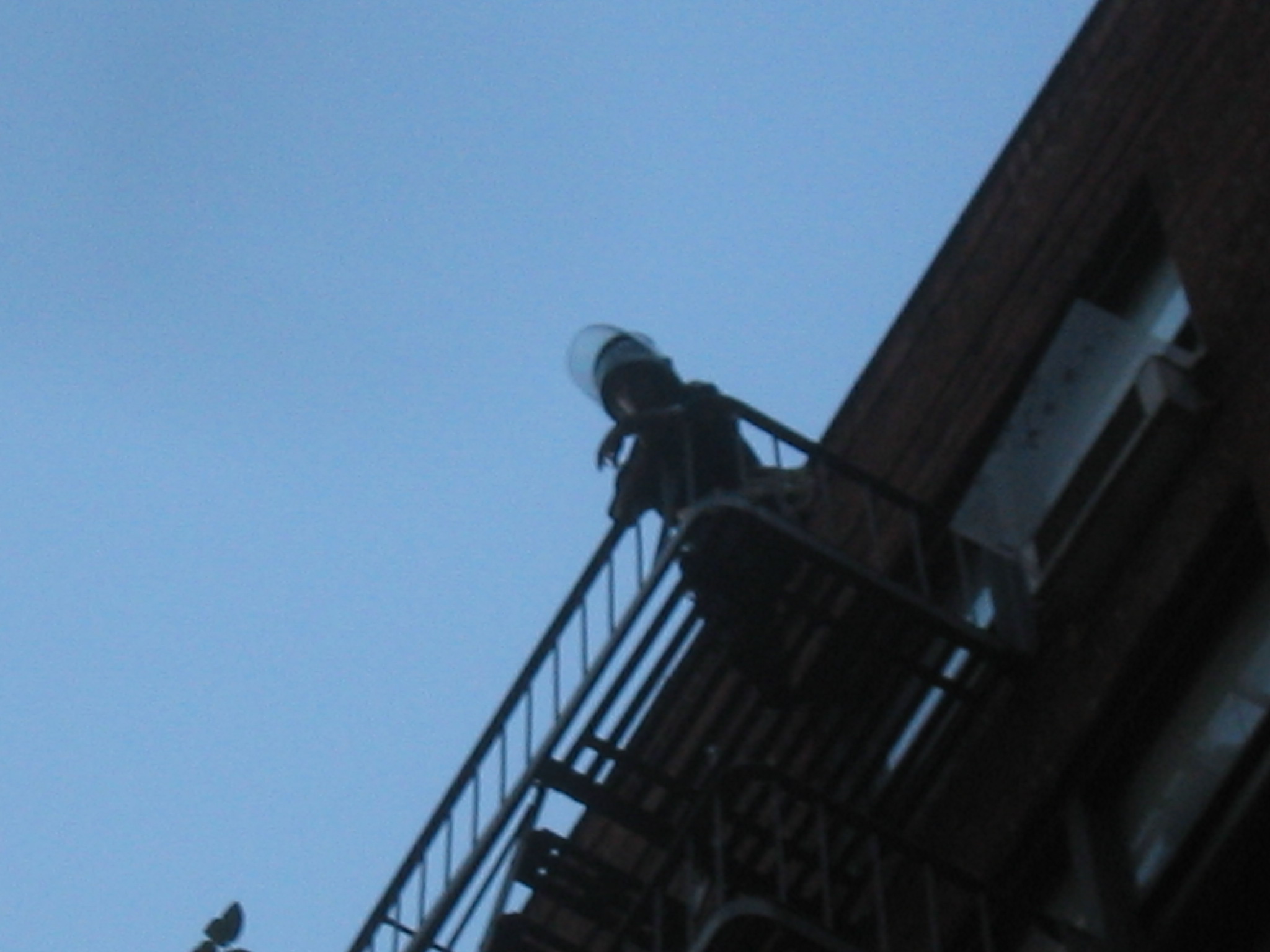 Full-Size Image (2048 x 1536) They somehow got up on the roofs and were staring down at the people.