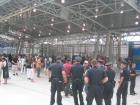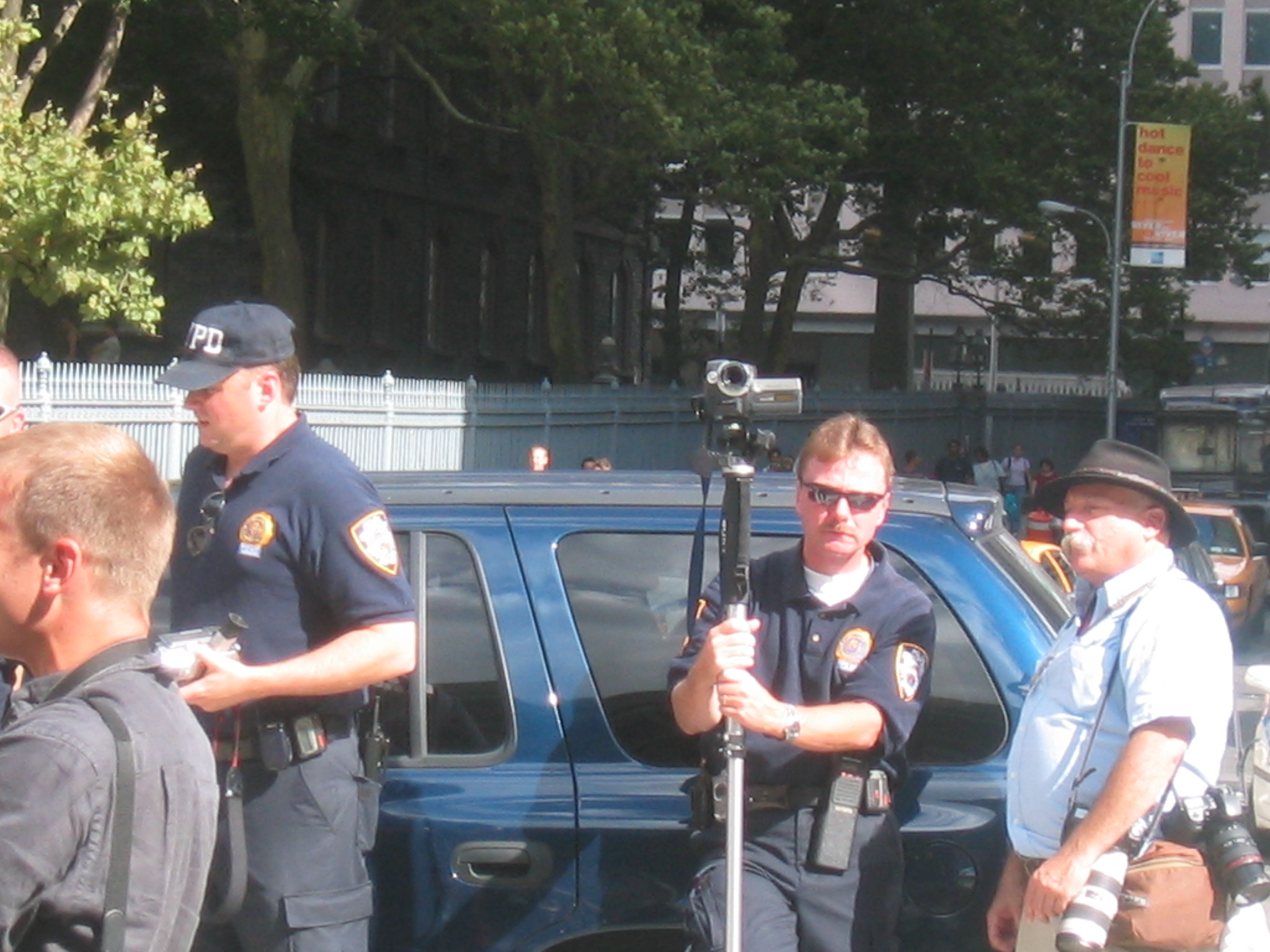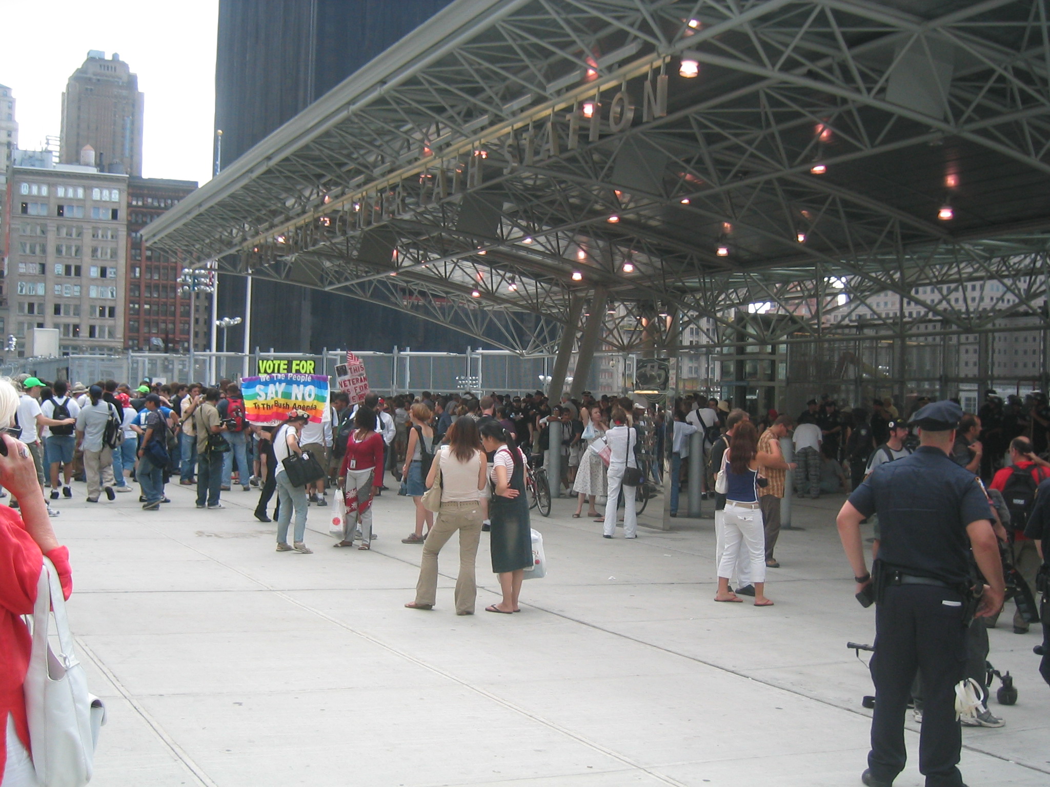 Full-Size Image (2048 x 1536) Demonstrators gather at the PATH Station by Ground Zero with an almost equal number of police.